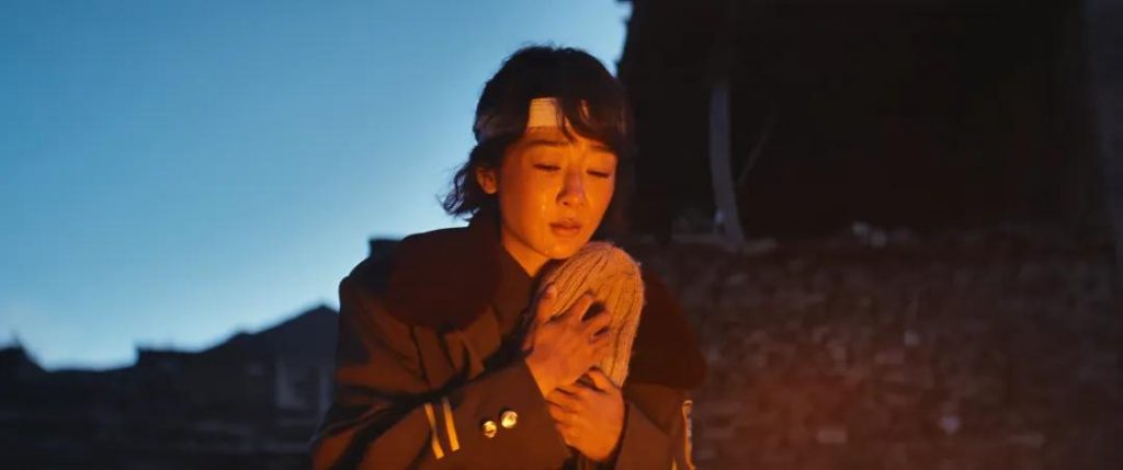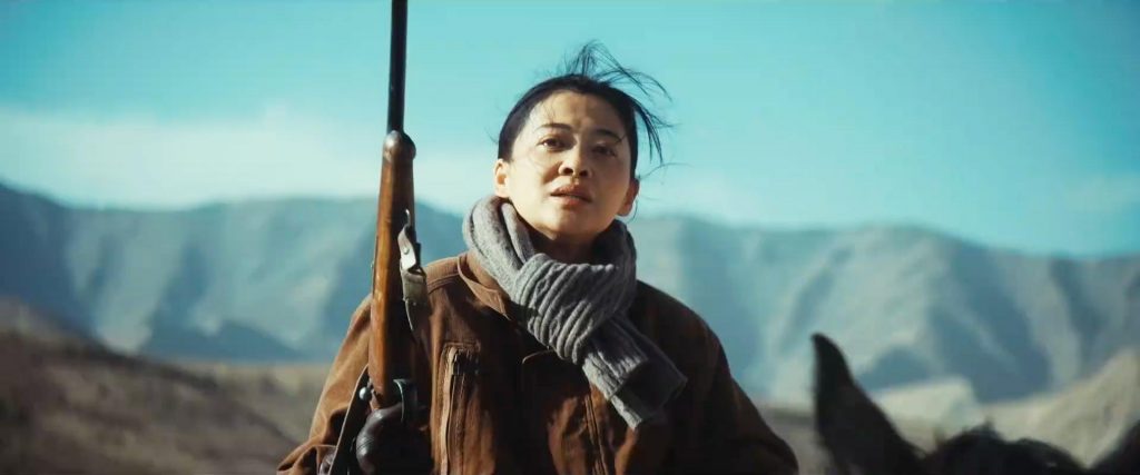 梅婷把那种英姿飒爽的气场,演得很是带感。她坐在马上,腰板挺直,眼神犀利,端枪的动作干脆利落,完全是一个巾帼英雄的模样。张勤勤这种既能救死扶伤,又能持枪护子的硬核母亲形象,梅婷演得还是不错的。